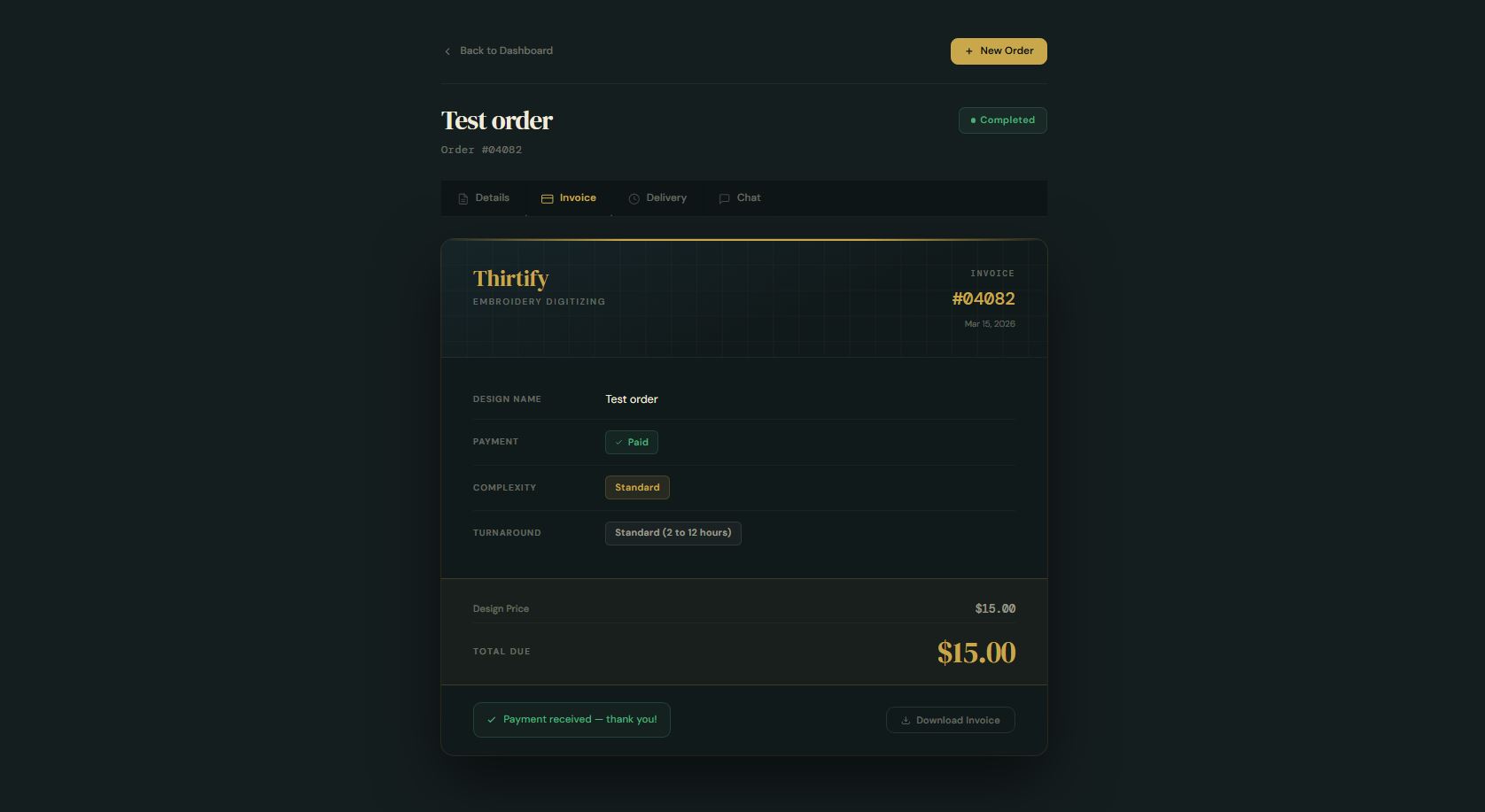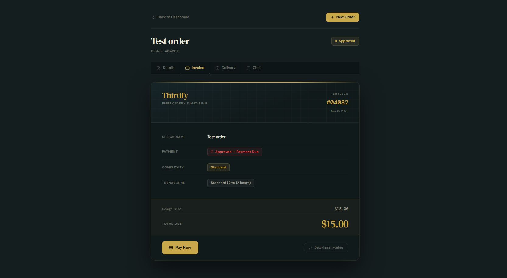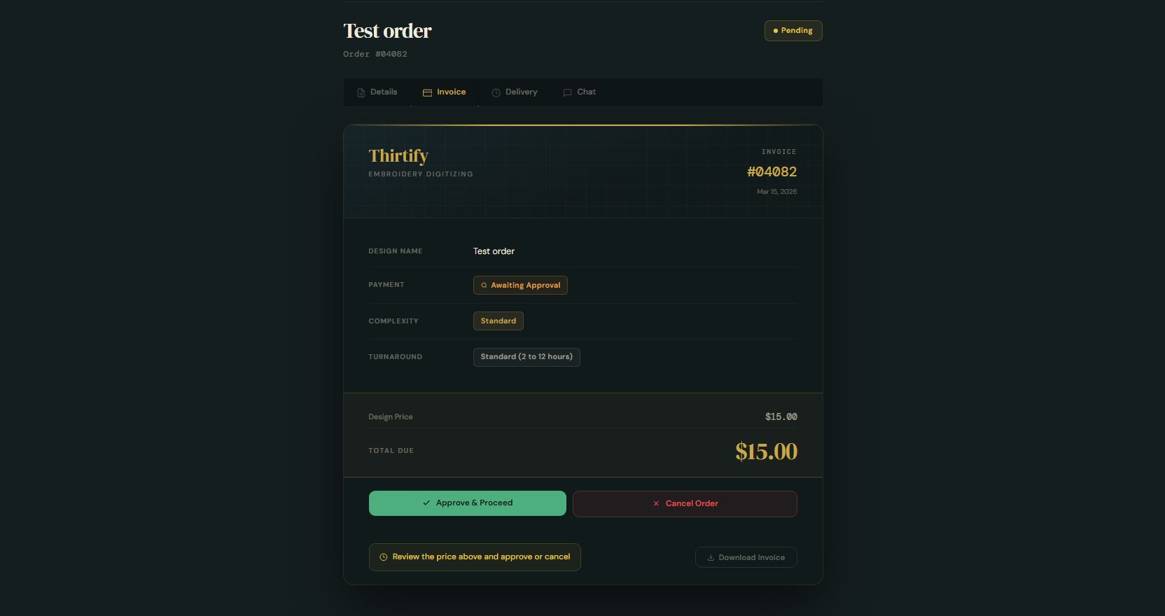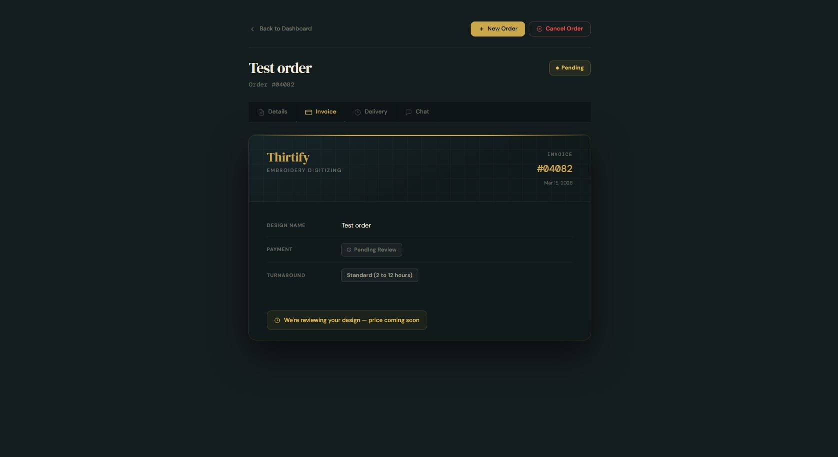 Every design is reviewed before pricing is confirmed. You see the price in your dashboard and approve before we start. No surprises.